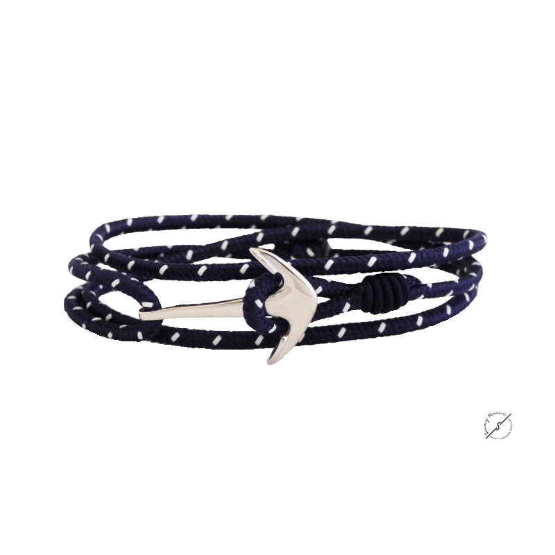 Ανδρικό βραχιόλι Άγκυρα ασημένια 925 με ναυτικό κορδόνι μπλέ-άσπρο.Ρυθμιζόμενο