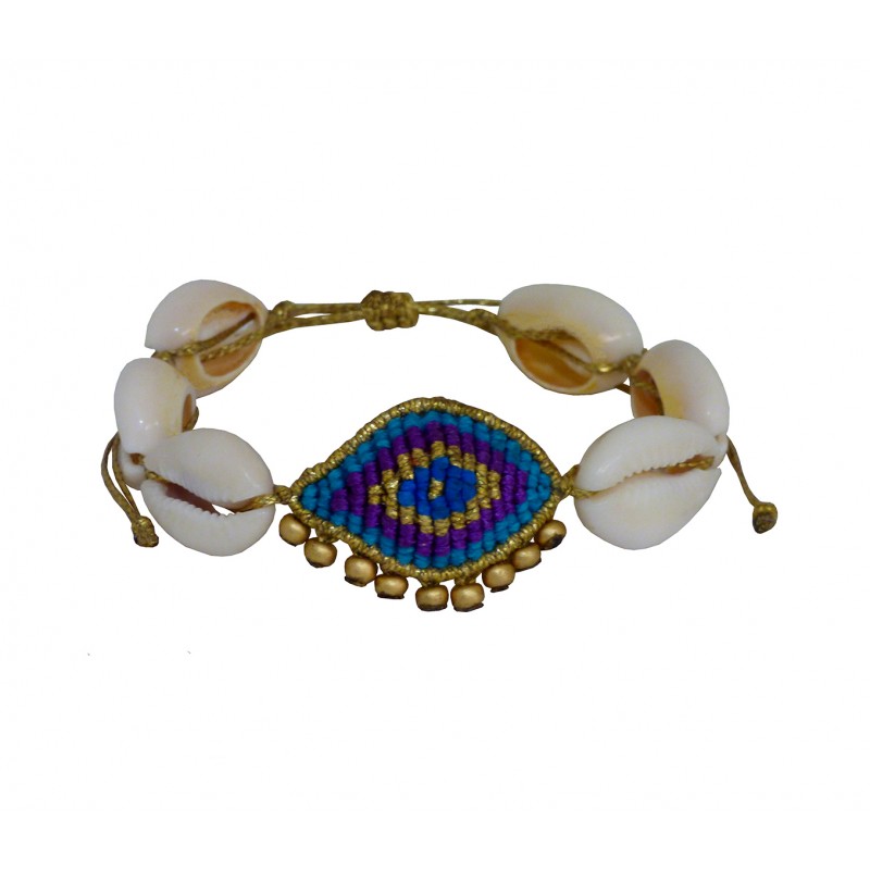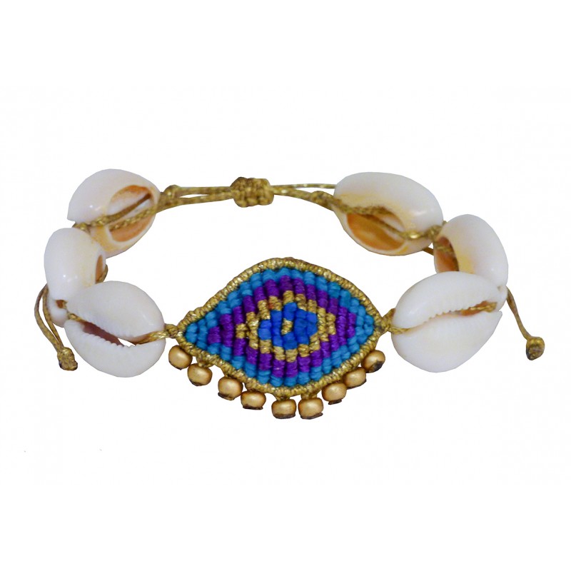 Handmade bracelet evil eye macrame natural shells VR00670